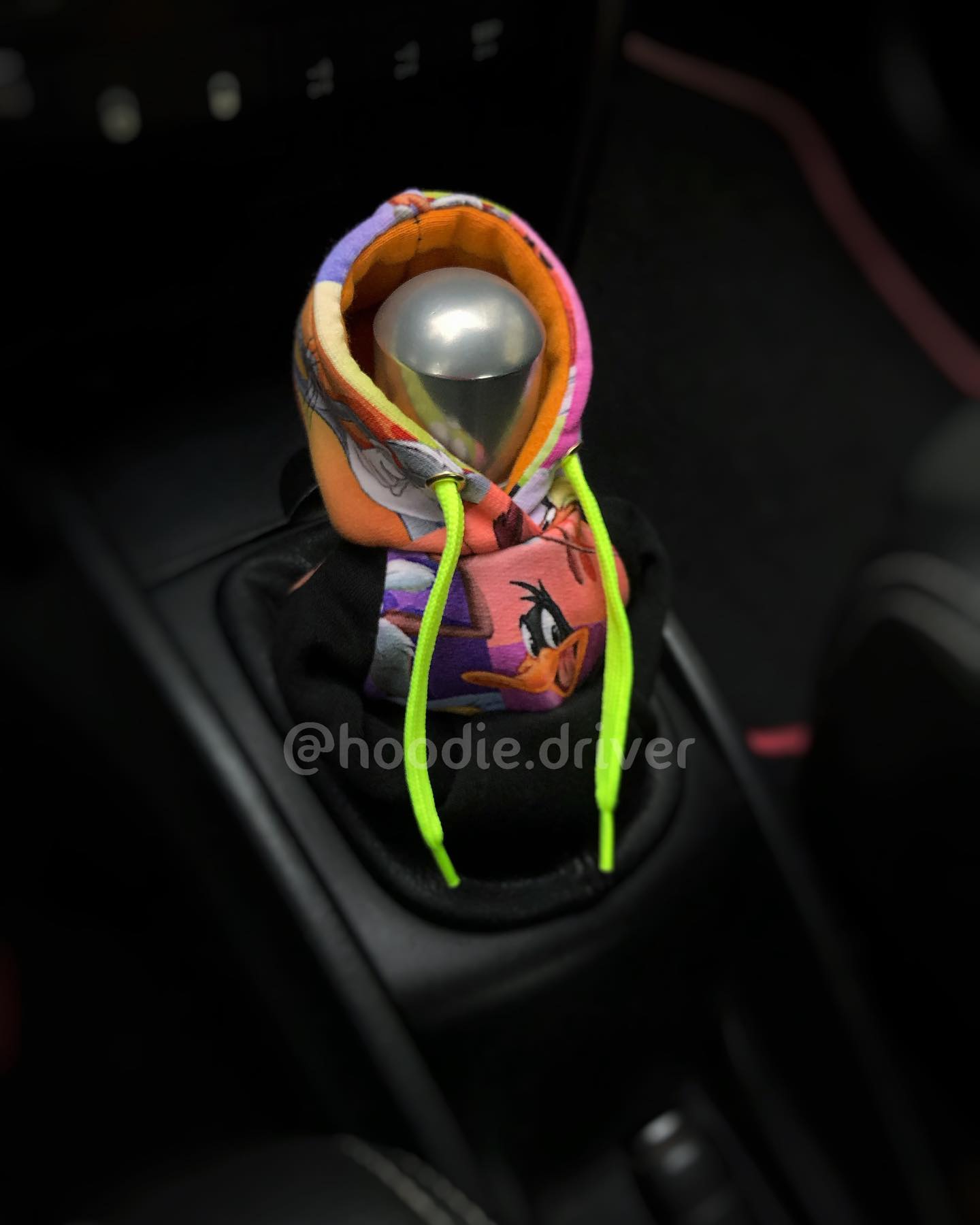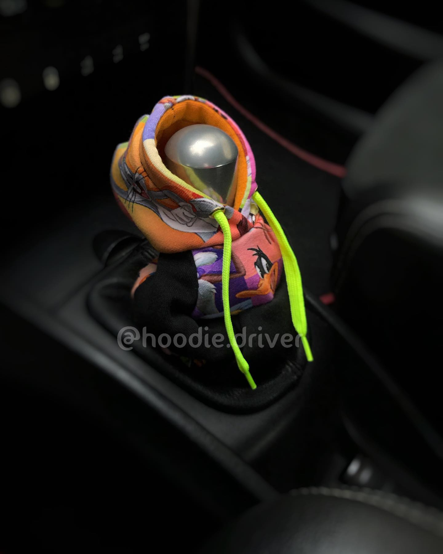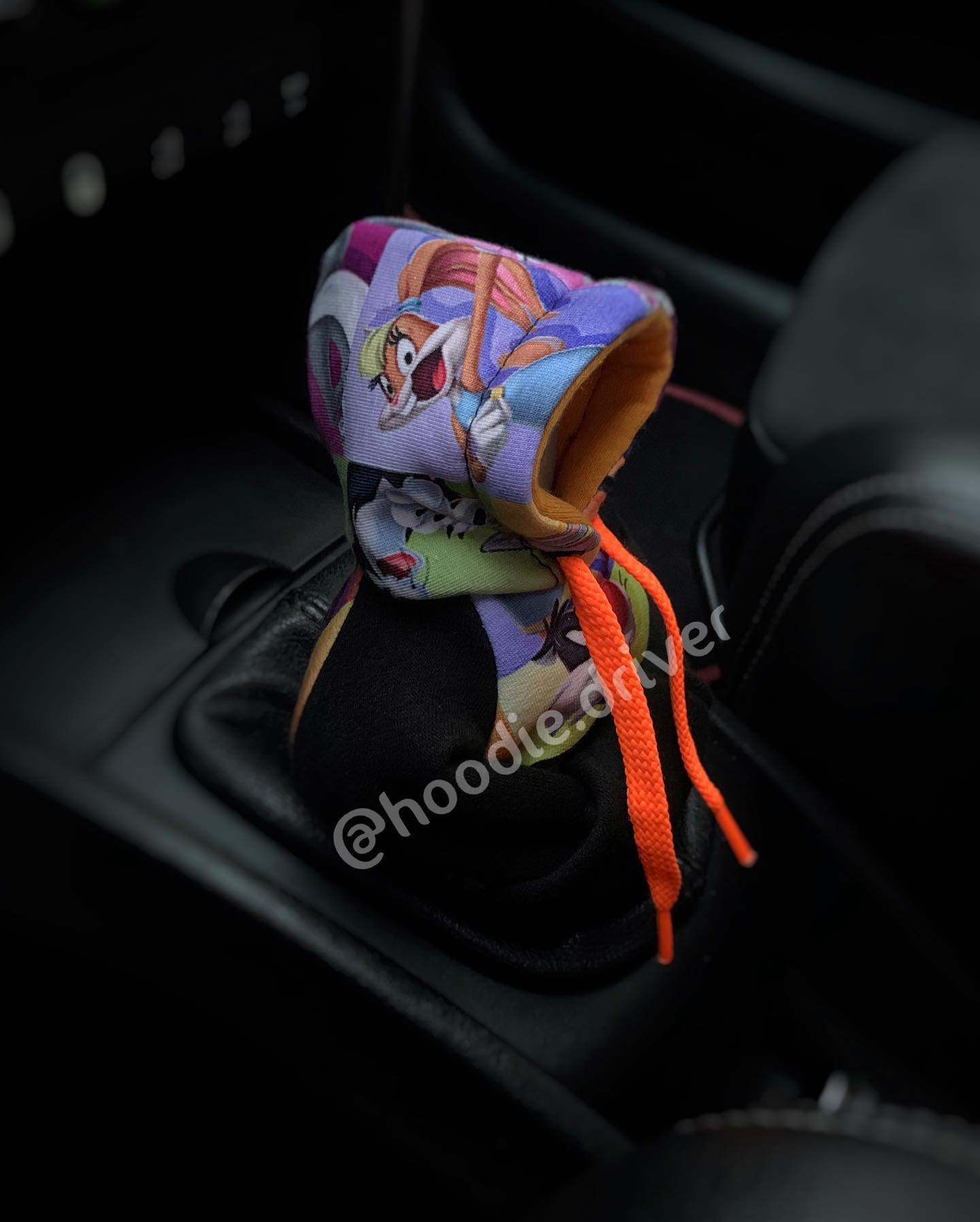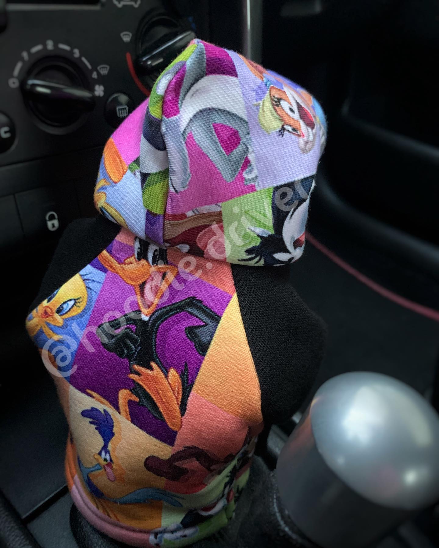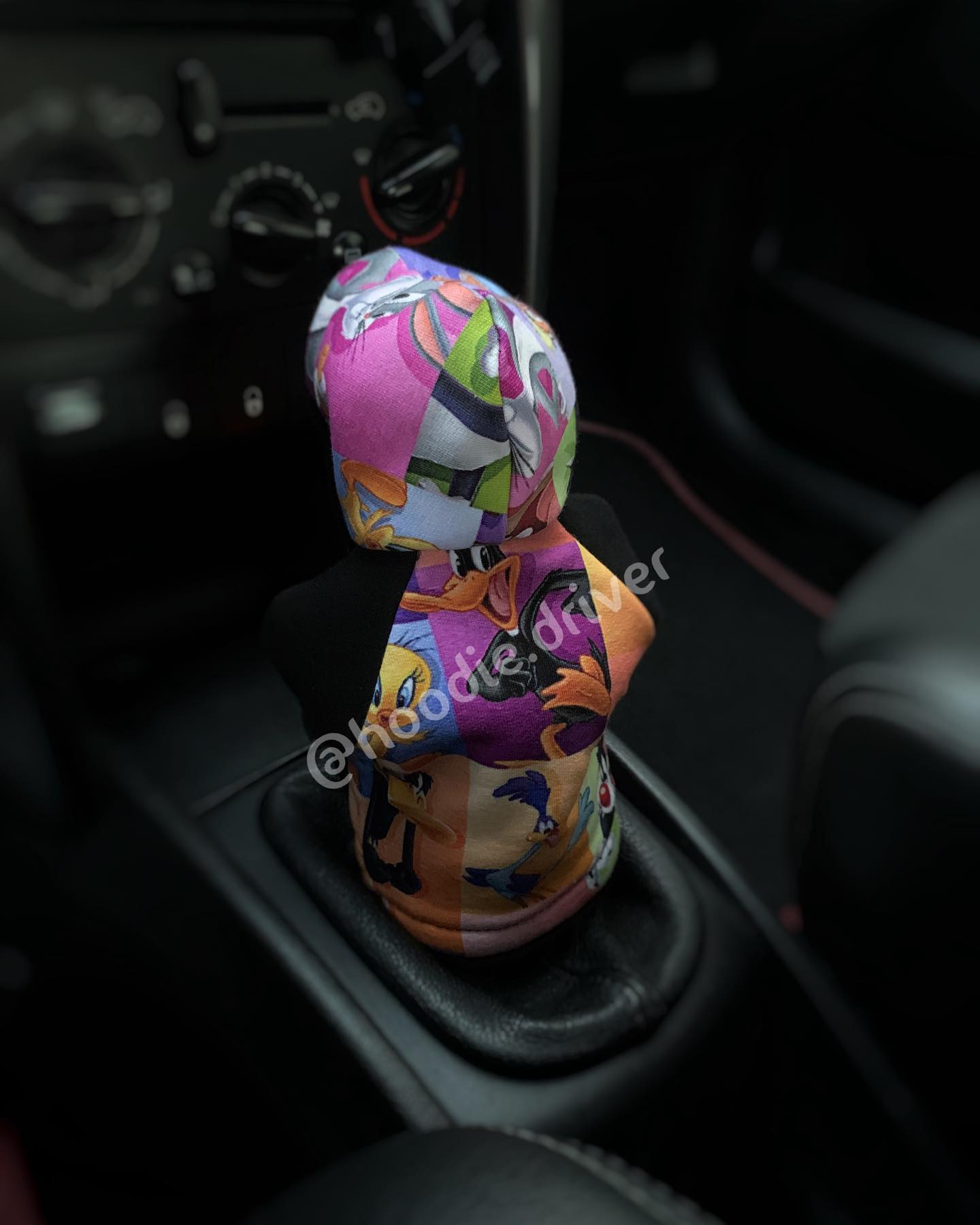 Highlight your style and upgrade your car with the hoodie shift knob cover featuring Looney Tunes characters.